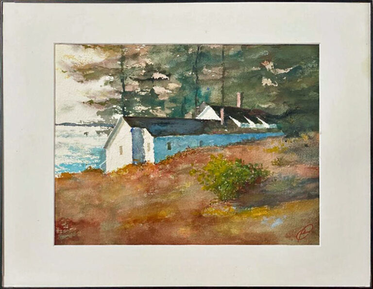 8 1/2″ x 11″ (approx) Watercolor. Matted and framed in 12 x 16″ frame. $479