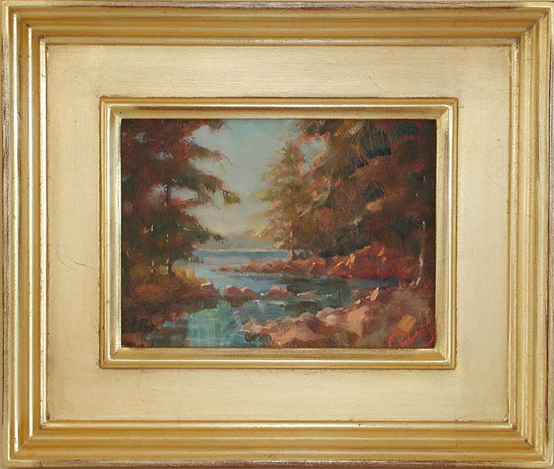 | Actually this could be any of a number of small inlets that open out onto the St George River. It's not about reality, it's about trying to capture the effect of the slanting afternoon light on an unspoiled chunk of Maine. | |