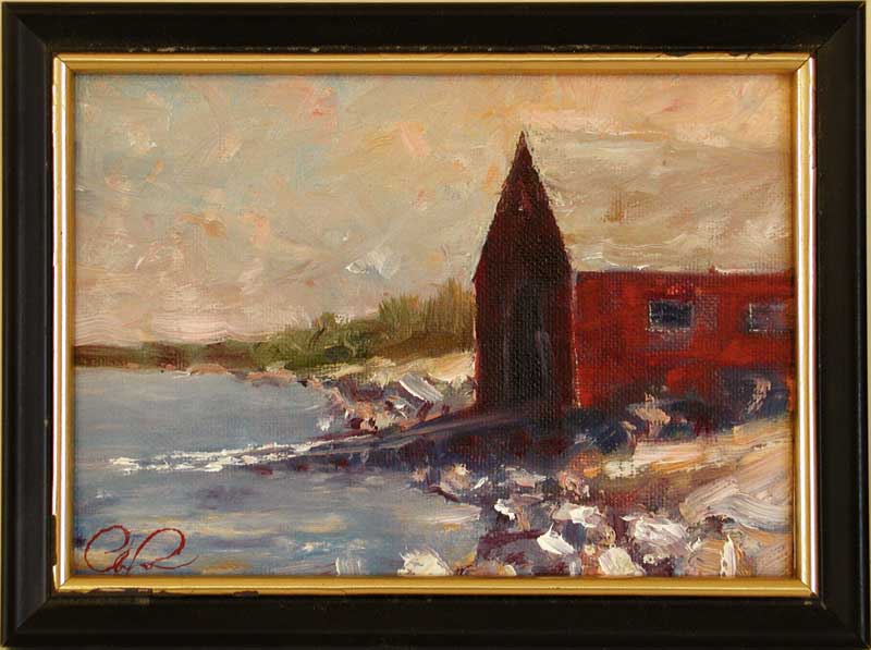 Just a little something I made up to challenge my ability to get the values right in a low slanting light. At my stage in the learning process it’s about taking more risks with thicker paint and looser brushwork which is the direction the books say all artists go. |