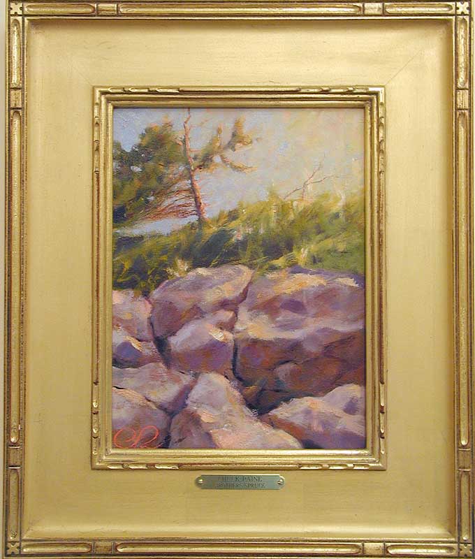 | This weatherbeaten relic of a gnarled old spruce clings to Brothers' Ledge off Port Clyde proving the tenacity of life on the coast of Maine. I caught her showing off her dignity in the fading light of a midsummer day. | |