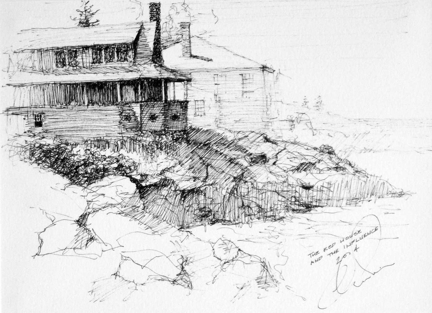 8″ x 10″ (approx) Pen & Ink Matted and framed in 11 x 14″ frame. $200